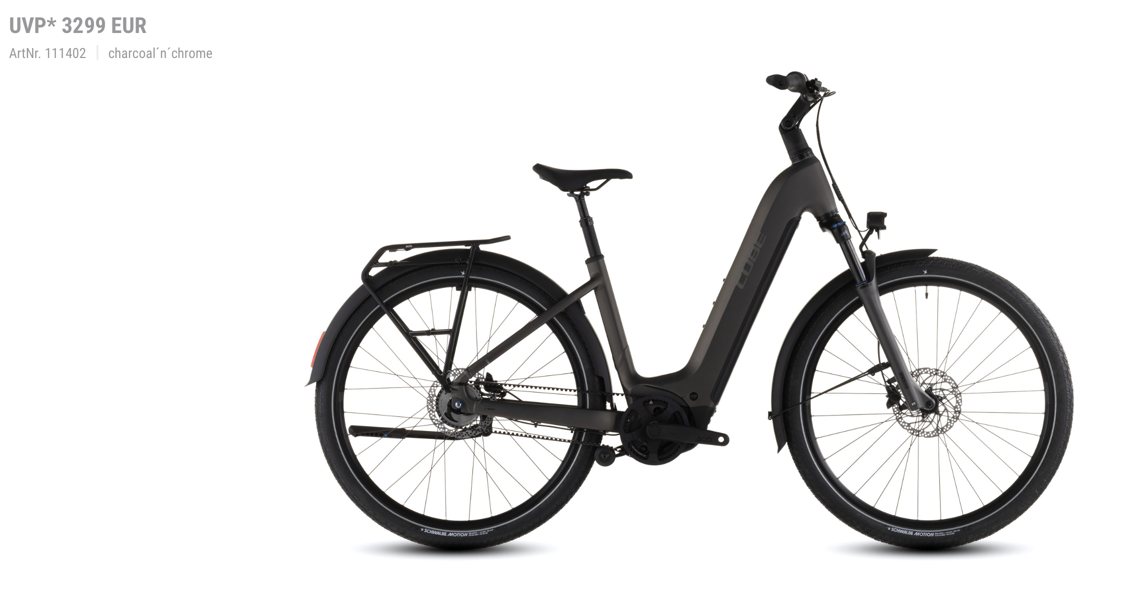 Der Superskill des Touring Hybrid Tiefeinsteiger-Rahmens? Natürlich sein tiefer Einstieg, der das Auf- und Absteigen erleichtert. Zugleich gibt’s keinerlei Abstriche in Sachen Funktionalität und Vielseitigkeit. Auf dem ebenso stabilen wie stylishen integrierten Gepäckträger 2.0, findet alles Platz, was auf Tour mit muss. Auch der leistungsstarke Bosch Performance PX Motor fügt sich samt 800 Wh PowerTube Akku so formschön ins Design ein, dass er kaum auffällt. Was aber natürlich auffällt, ist der tolle Support im Vorwärts! Für ein komfortables und zugleich kontrolliertes Fahrgefühl, selbst auf holprigen Strecken, sind unsere Efficient Comfort Geometry und die Federgabel mit ihren 100 mm Federweg zuständig. Was noch? Ein Seitenständer, Schutzbleche und Lichter