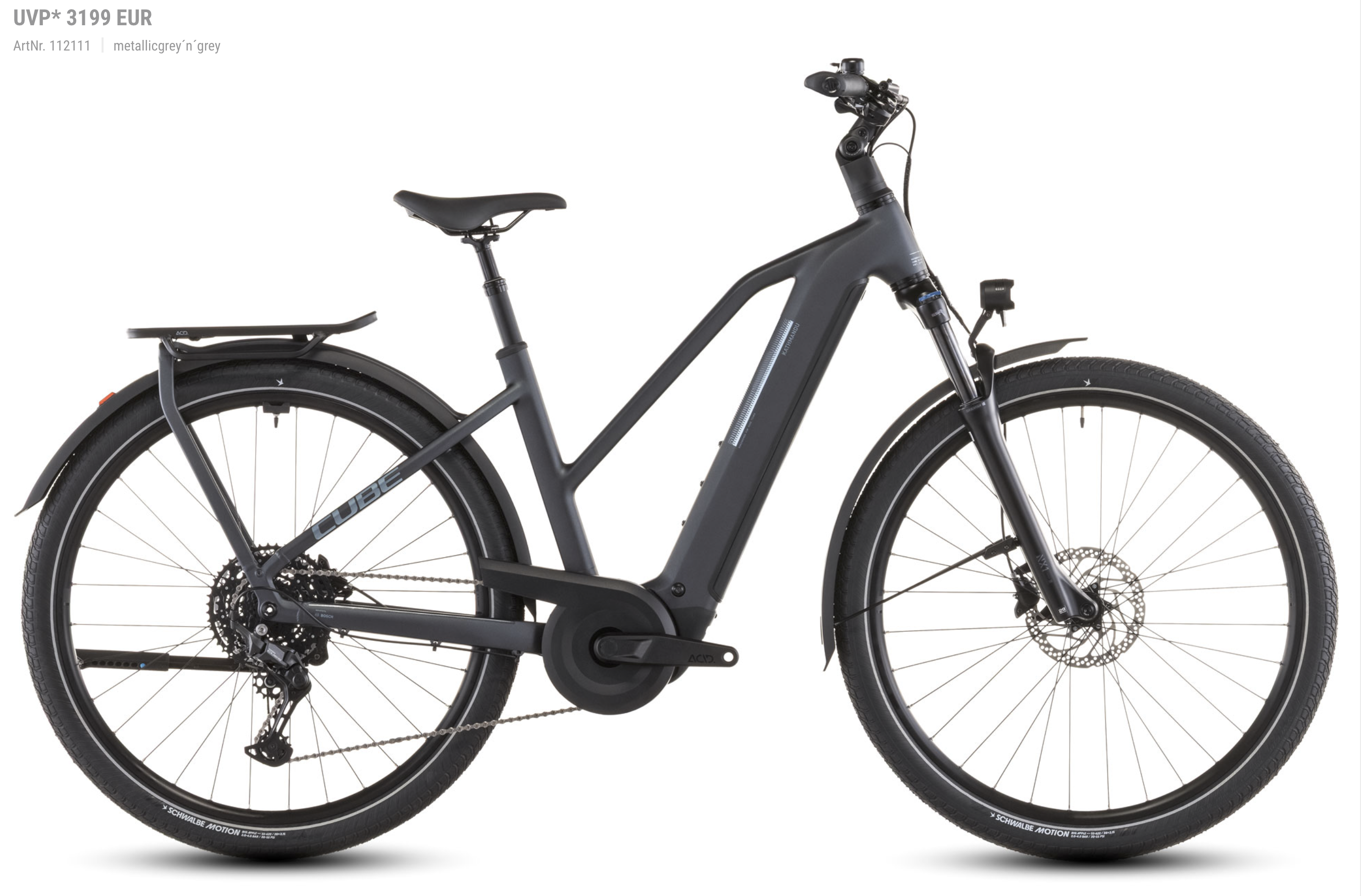 Wer mit dem CUBE Kathmandu Hybrid ONE unterwegs ist, kann seiner Abenteuerlust freien Lauf lassen. Denn dieses Bike ist mit einem 800 Wh PowerTube Akku ausgerüstet, der den leistungsstarken Bosch CX Antrieb mit bis zu 100 Nm Drehmoment zuverlässig vorwärtstreibt. Außerdem mit einer einfach zu bedienenden, breit gefächerten Cues 10-fach Schaltung von Shimano, welche diese Power wohldosiert auf die Straße bringt. So wird jede Route zum Spaziergang! In Sachen Komfort leisten die Suntour Luftfedergabel, eine gefederte Sattelstütze und der verstellbare Vorbau besonders an langen Tagen im Sattel wertvolle Dienste. Sichere, zuverlässige Bremskraft bei jedem Wetter ist das Spezialgebiet der kraftvoll zupackenden hydraulischen Shimano Scheibenbremsen. Ebenso mit an Bord ist ein Zubehör-Komplettset, bestehend aus einer Lichtanlage, Schutzblechen und natürlich unserem integrierten Gepäckträger IC 3.0. Soll heißen: Dieses E-Bike ist allzeit bereit für sämtliche Entdeckertouren!
